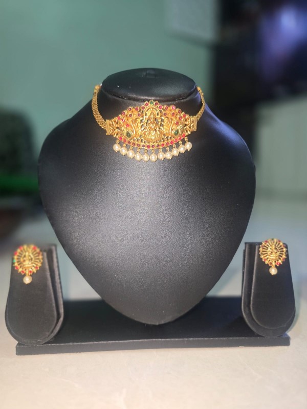 •While draped in six yards of silk, your real enigmatic charm comes alive through this Temple •Necklace Set. Let your radiant face come into the spotlight with this handcrafted artisan work purely from the southern part of India.